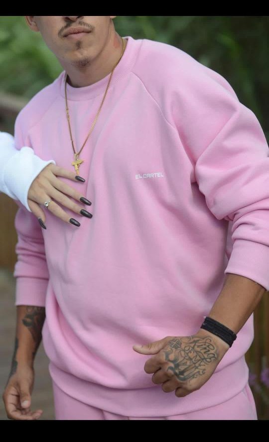 Φούτερ χωρίς κουκούλα σε ροζ, λευκό και μαύρο.